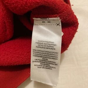 2 minor stains. 1 on left sleeve and 1 near right pouch opening