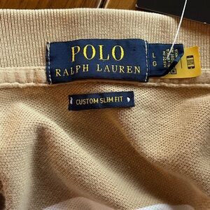 Size Large custom slim fit excellent used condition white/beige striped polo shirt.