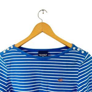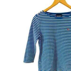 Polo Ralph Lauren Blue White Stripe Boatneck 3/4 Sleeves T-shirt