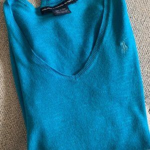 Polo Sport V Neck Knit Sweater is in great condition. Light weight and made of 55% cotton and 45% linen. Colour: Turquoise and Size: Small