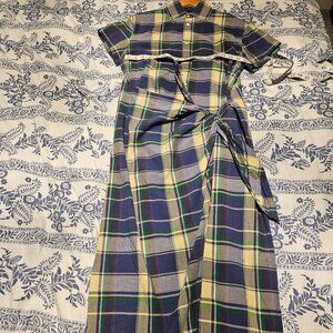 Chic plaid dress with short sleeves. Features a wrap design. Perfect for casual outings. Sadly too small for me!