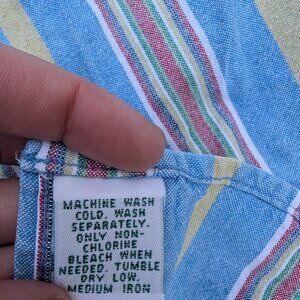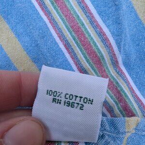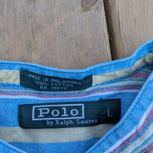 Add a touch of timeless style to your wardrobe with this classic Polo by Ralph Lauren button-up shirt. This men's size large shirt features a clean blue striped pattern and a crisp, collared neckline. Crafted from soft cotton, it's perfect for a comfortable yet polished casual look. A must-have for any man who appreciates the brand's iconic, preppy aesthetic, this shirt is versatile enough for a night out or a relaxed day in.