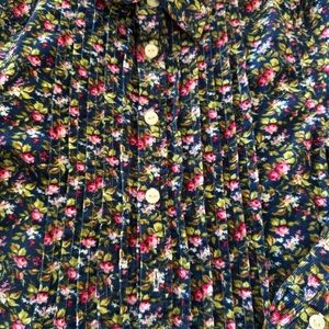 Adorable Polo Ralph Lauren girls’ corduroy shirtdress in a navy floral print.