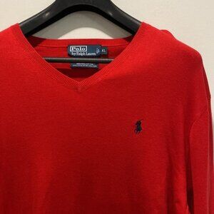 Polo by Ralph Lauren Men's Red V Neck Sweater