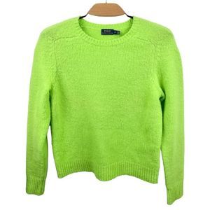 Polo by Ralph Lauren Neon Green Scottish Shetland Wool Crewneck Sweater Size L
