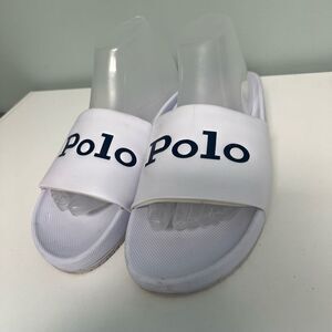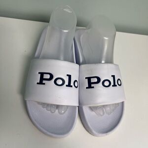 Polo Ralph Lauren Womens Size 9 Polo Spellout Cayson Slides White Black Sandals
