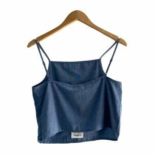 Pomelo Blue Square Neck Denim Chambray Sleeveless Cropped Tank Top US L