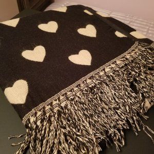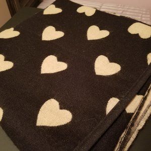 Reversible, black with beige hearts on one side or wear beige with black hearts.