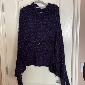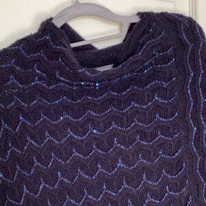Poncho Women's Blue Knit Sequences Fringe Tassels One Size Ladies Warm Parties