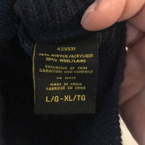 Chic and classic blue poncho with stitched sides and cable knit detailing across chest.