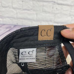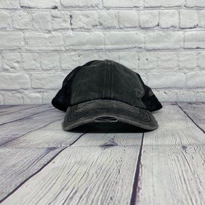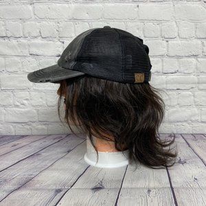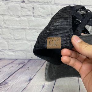 Pony Tail Women Hat Cap Strap Back Gray Distressed Mesh Back C.C. Ladies