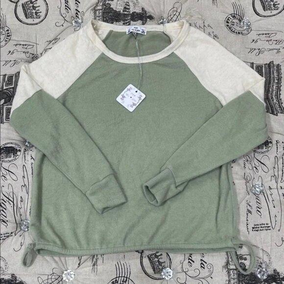 Chic olive and cream top. Ideal for everyday comfort.