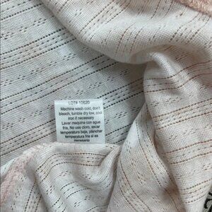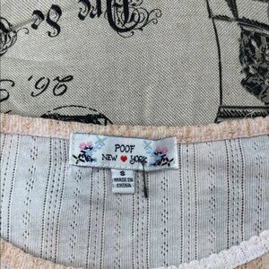 Chic Poof! top with peach and white stripes. Ideal for everyday style.