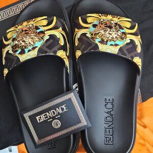 Pool Slide Vitello St FENDACE Gold Baroque Multicolor-Oro VERSACE size 5