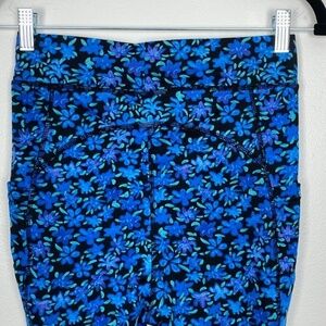 Pop Fit Leggings NWOT Womens Med Blue Black Floral Side Pockets Super Stretchy