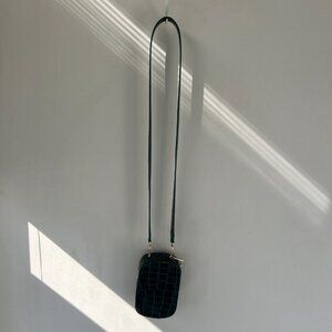 Pop & Suki Crossbody Camera Bag Emerald Green Croc Leather