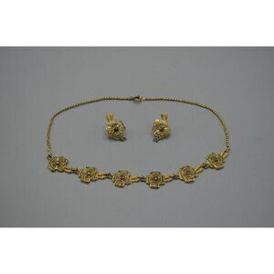Poppy Earrings & Necklace Matching Set Silver Utika Marking Gold Tone Filigree