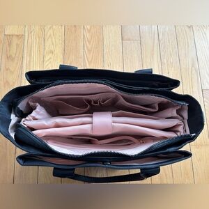Chic black tote with sleek design. Perfect for daily essentials. Stylish and practical.