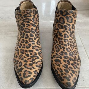 Very lightly worn cheetah print leather boots by poppy barley. Size 6.