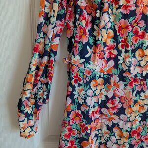 Cute floral dress from UK brand Popsy Clothing. Made in the UK, and has pockets! Lots of stretch and soft, comfortable fabric. Comes with a belt.