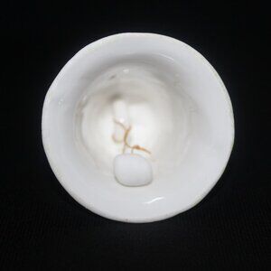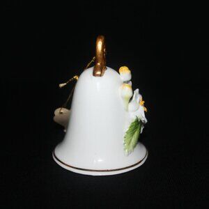A lovely fine porcelain "May" Bell of the Month. It has a beautiful ring to it, due to the quality of the porcelain. It is in pristine condition, without any chips, cracks, or crazing. The gilt on the finial and rim is in excellent condition, without any flaking. It stands 3" in height.