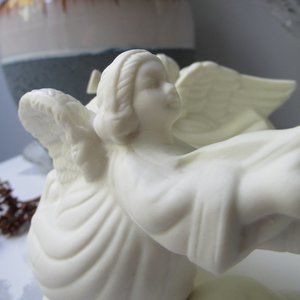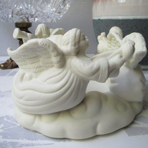 Porcelain Biscuit Candlestick Trio of Angels 1990s