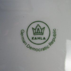 The plate was made at the Kahla porcelain factory in the German Democratic Republic. The stamp you can see on the back of the plates was used by Kahla from 1968 to 1987.