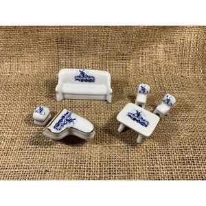 6-piece miniature porcelain furniture made in Japan and decorated with delicate windmill scene