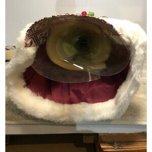 Porcelain Face Santa Claus Figurine Tree Topper Red Velvet & Faux Fur Coat 18"