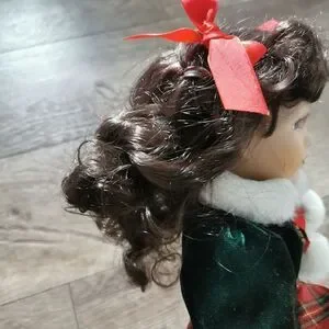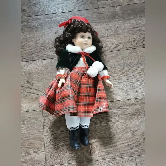 porcelain holiday / Christmas doll great condition does have a few markings on face but very light unknown brand
