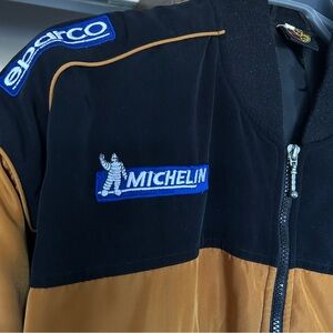 Color and Design Details: Black and Yellow with embroidered Porsche, Sparco, and Michelin logos. Bomber-style jacket with elastic waistband and lined interior, insulated.