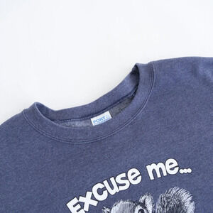 The Port & Company Chipmunk Comedy Grey Crew Neck Sweater in XL sounds like a fun and playful vintage find! Port & Company is known for producing comfortable, everyday basics, and a crew neck sweater with a chipmunk comedy theme adds a quirky, lighthearted touch.