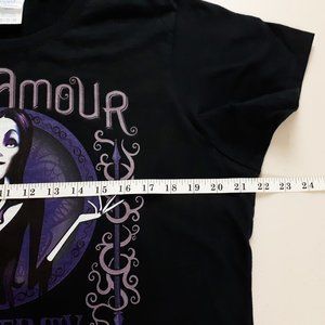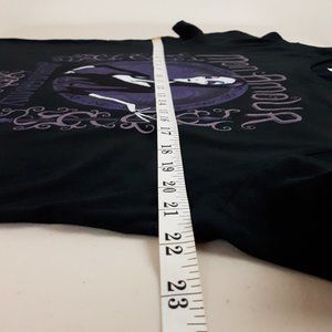 A black t-shirt with Morticia and typography graphic on the front. Carefully crafted using ring spun cotton to ensure durability, comfort, and breathability. New without tag. Great condition.