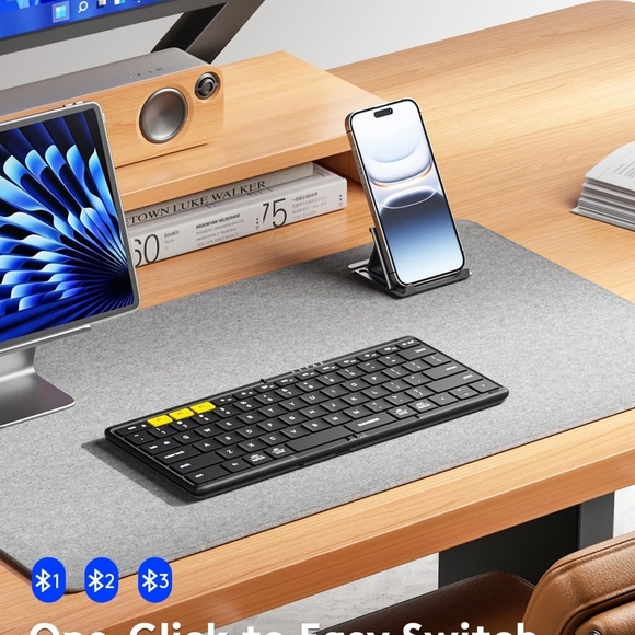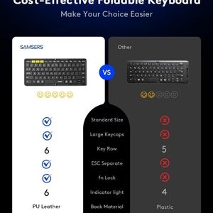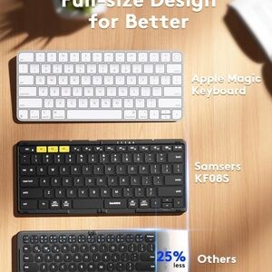 Enhance your productivity with this sleek black Bluetooth keyboard. Its compact design makes it perfect for on-the-go use. Enjoy seamless connectivity and a comfortable typing experience.Samsers Full-Size Foldable Bluetooth Keyboard, KF08S Wireless Folding Keyboards with PU Leather Cover, Portable Travel for iPhone iPad Smartphone Tablet Laptop, Android Windows Mac OS, Black