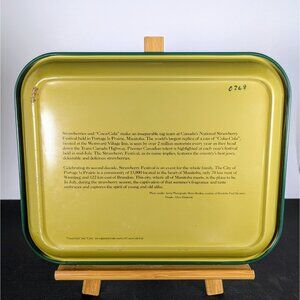 Celebrate a slice of history with this Portage la Prairie Strawberry Festival Tray, a nod to the world's tallest Coca-Cola can from 1993. Crafted from durable metal, this vibrant green tray features a unique design that commemorates the festive event, making it a great collectible for enthusiasts and community memorabilia collectors alike. Its vintage charm is unmistakable, and the tray's practicality is enhanced by its utility as a cafeteria serving piece. Whether displayed as part of a collection or used to serve up snacks at your next gathering, this piece brings a touch of nostalgia and Prairie spirit to any setting.
