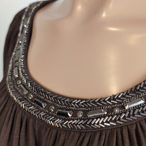 Scoop neckline with beaded trim