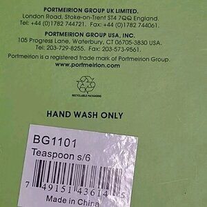 Portmeirion Botanic Garden Set of 6 Teaspoons, Porcelain Handles, Floral Motifs