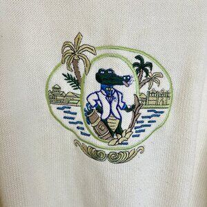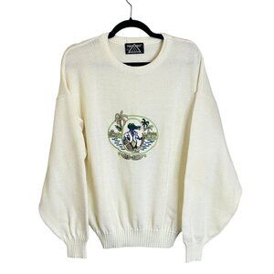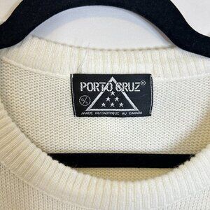 Porto Cruz Cream Novelty Sweater Sz L Women's Cotton Blend Long Sleeve Crew Neck