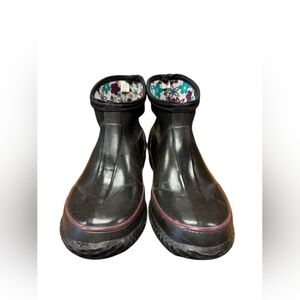 Portofino Rubber Ankle Boots Slip On Black Floral Size 40/8 EUC