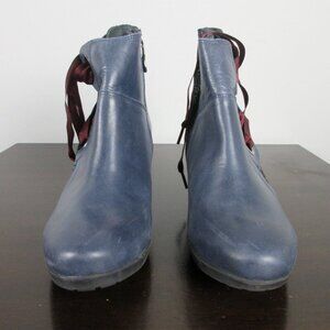 Portofino Women's Ankle Boots Booties Heels Side Lace-up Almond Toe 39 Navy 880