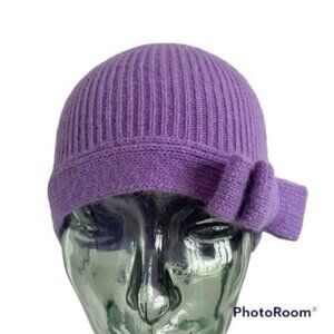 Portolano Purple Lambswool Angora Ribbed Knit Bow Beanie - new with tags!
