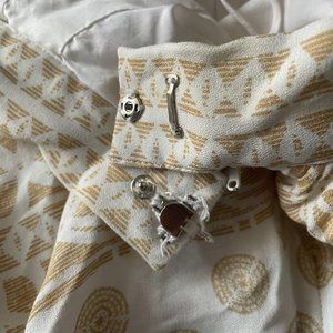 100% rayon, zip and hook enclosure, white and brown print