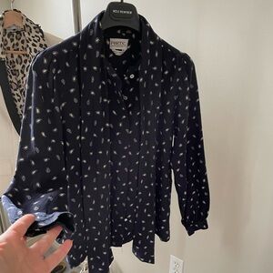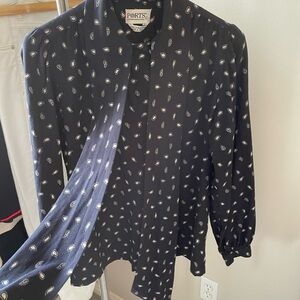 Ports Vintage Lg Sleeve Paisley Cotton + Wool Blouse Navy White Gray Sz 6