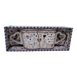 Portuguese "Love Handkerchief" Design Twin Mugs Set of 2 In Matching Gift Box