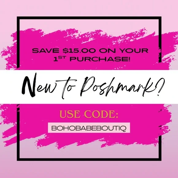Save $15 on your first Poshmark purchase with code BOHOBABEBOUTIQ. Stylish pink design.