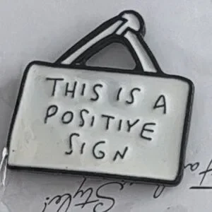 Charming enamel pin with 'This is a Positive Sign' message. Perfect for adding a touch of positivity to any outfit.