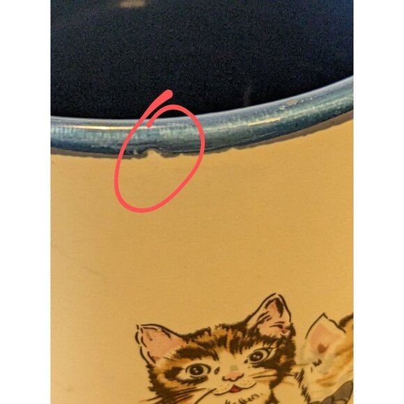 This vintage Potpourri Press coffee mug features a playful design of cats at play. The round ceramic mug has a capacity of 10 oz and is suitable for hot or cold beverages. It was manufactured in Korea in 1989 and has an item height of 3.5 inches. The mug is multicolored and has a unique style that is perfect for all occasions. The set includes one coffee mug and it is an original piece. The mug is unisex and can be enjoyed by teens, unisex adults, and unisex kids. It is a great addition to any collection and is perfect for cat lovers. The mug is made of ceramic and has a glass type of ceramic. The time period manufactured is 1989.