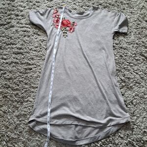 Potters pot | Grey t shirt dress with beautiful embroidered rose flowers . women's size small (size is listed on care tag)
