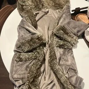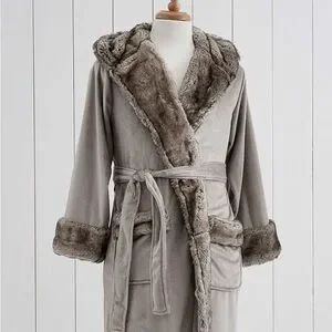 Just as indulgent as it looks. Machine-washable and monogramable, our faux fur robe is woven with a plush, sumptuous hand, recalling fur’s natural softness and tonal variation.
