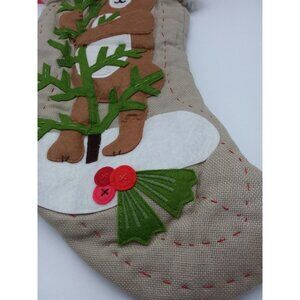 Pottery Barn Kids " Becca" Holiday Woodland Bear with Christmas Tree Stocking. Monogrammed "Becca" Measures approximately 20” x 11.” Condition is "New with defects". Note: monogramming stitching is not perfect.